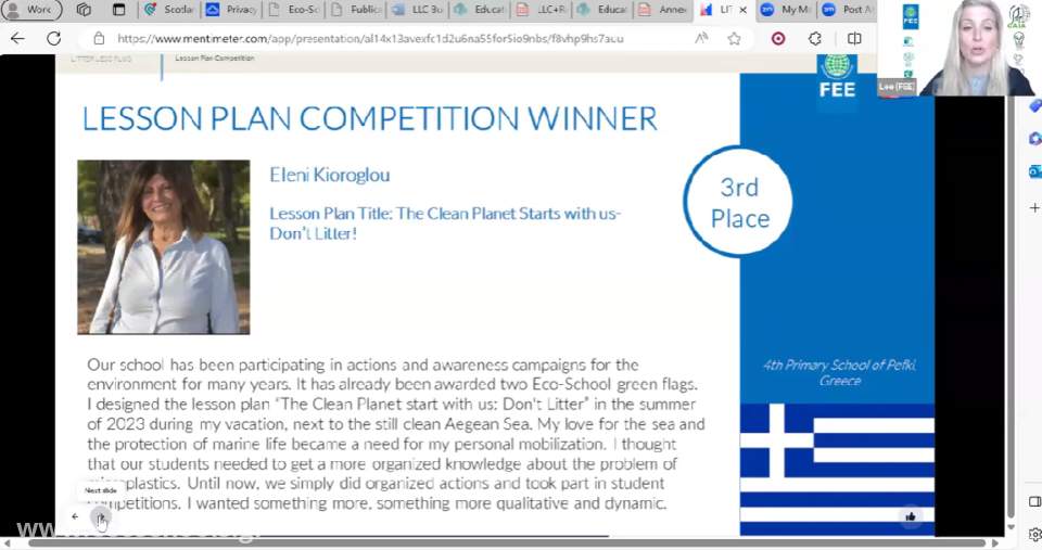 Στις 8 Νοεμβρίου πραγματοποιήθηκε από το Διεθνές Ίδρυμα για την Περιβαλλοντική Εκπαίδευση FEE η τελευταία διαδικτυακή συνάντηση για τη διεθνή εκστρατεία Litter Less Plus, όπου συγκεντρωθήκαμε για να γιορτάσουμε τα επιτεύγματά μας κατά τη διάρκεια του περασμένου έτους.