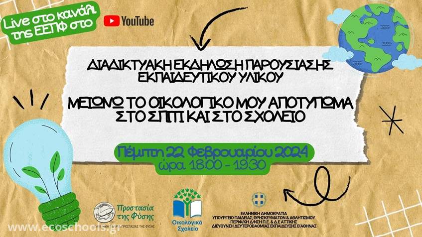 Διαδικτυακή εκδήλωση για την παρουσίαση του νέου εκπαιδευτικού υλικού «Μειώνω το οικολογικό μου αποτύπωμα στο σπίτι και στο σχολείο»