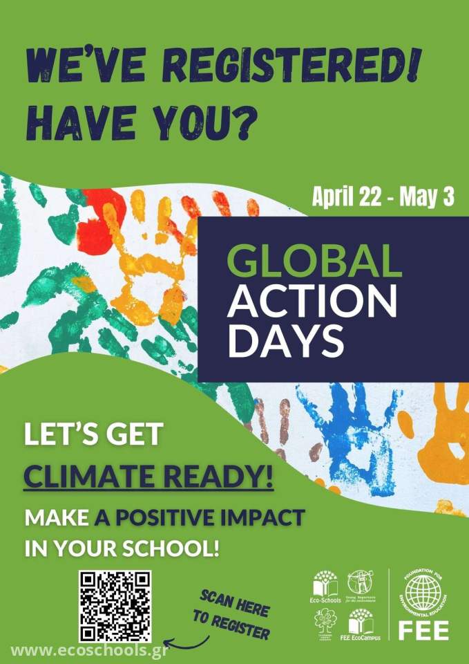 Μοιραστείτε αυτά τα συναρπαστικά νέα με τη σχολική κοινότητα και την τοπική κοινωνία, για να τους ενημερώσετε ότι συμμετέχετε στις Παγκόσμιες Ημέρες Δράσης 2024 του FEE. Όσο περισσότεροι, τόσο το καλύτερο!