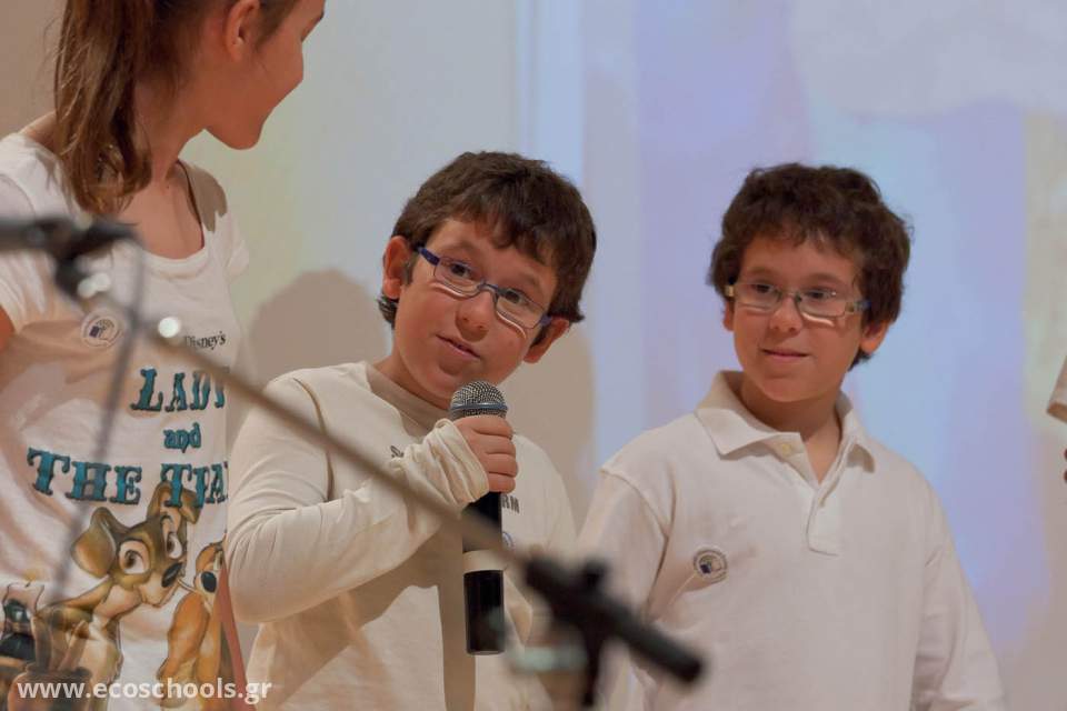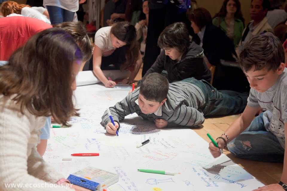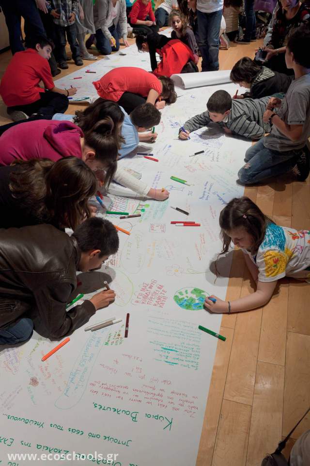 Στο τέλος τα παιδιά έγραψαν τα δικά τους μηνύματα για το περιβάλλον και για ένα καλύτερο κόσμο σε δυο πανό τα οποία έστειλε η επιτροπή του προγράμματος στο Δήμαρχο Αθήνας και στον κ. Καρτάλη. Η εκδήλωση έκλεισε σ’ ένα έντονο συγκινησιακά περιβάλλον καθώς όλα τα παιδιά τραγούδησαν ένα τραγούδι για το περιβάλλον και τη ζωή. Σταμάτης Σκαμπαρδώνης Αντιπρόεδρος Συντονιστικής Επιτροπής Δικτύου