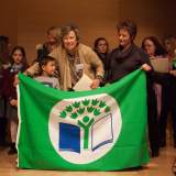 Στο τέλος της εκδήλωσης η Ομάδα Τέχνης Πάροδος με τον Ηλία Πίτσικα και τους συνεργάτες του ξεσήκωσαν τα παιδιά με το τραγούδι των Οικολογικών σχολείων, αλλά και τα παιγνίδια που έκαναν. Ο ενθουσιασμός και το πάθος των συμμετεχόντων έστειλε το μήνυμα ότι εδώ και τώρα πρέπει όλοι να αναλάβουμε δράση για την προστασία του περιβάλλοντος πριν είναι πολύ αργά. Το βραβείο με την πράσινη σημαία έδωσαν στα σχολεία τα μέλη του Δ.Σ της ΕΕΠΦ, τα μέλη της Συντονιστικής Επιτροπής του Δικτύου και ο Διευθυντής Β/θμιας Εκπ/σης της Β΄ Διεύθυνσης Αθηνών κ. Φαλούκας, ο οποίος έδωσε συγχαρητήρια σε όλα τα παιδιά καθώς και στους εκπαιδευτικούς.