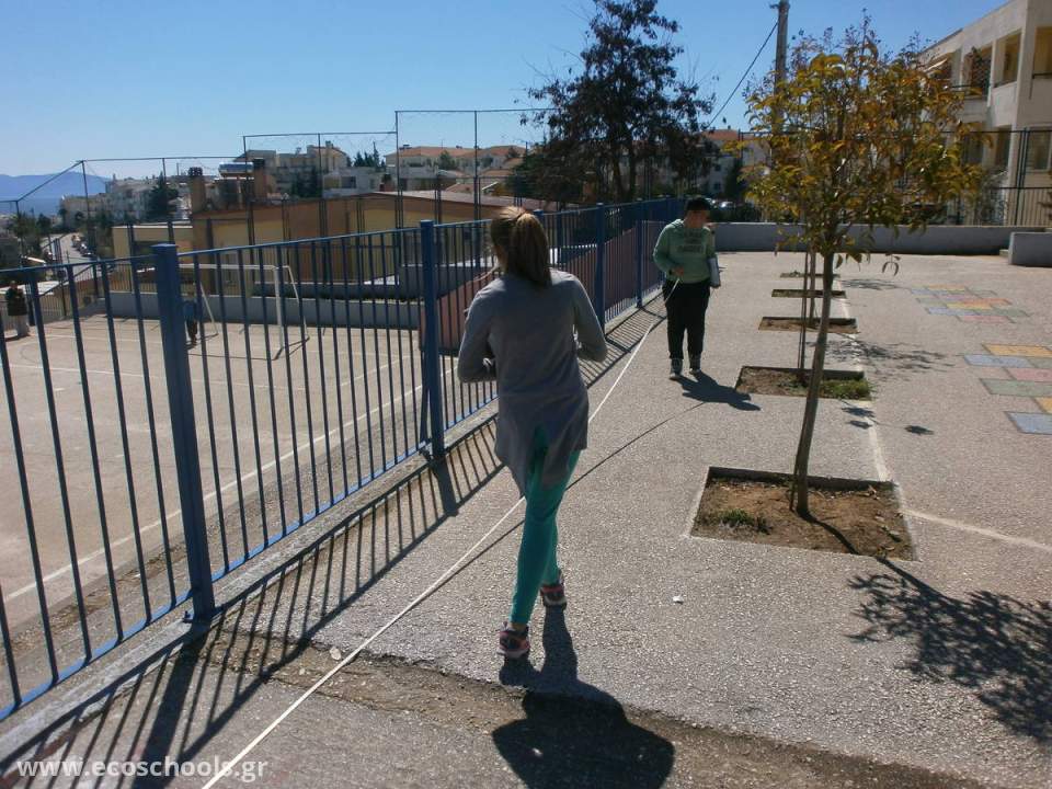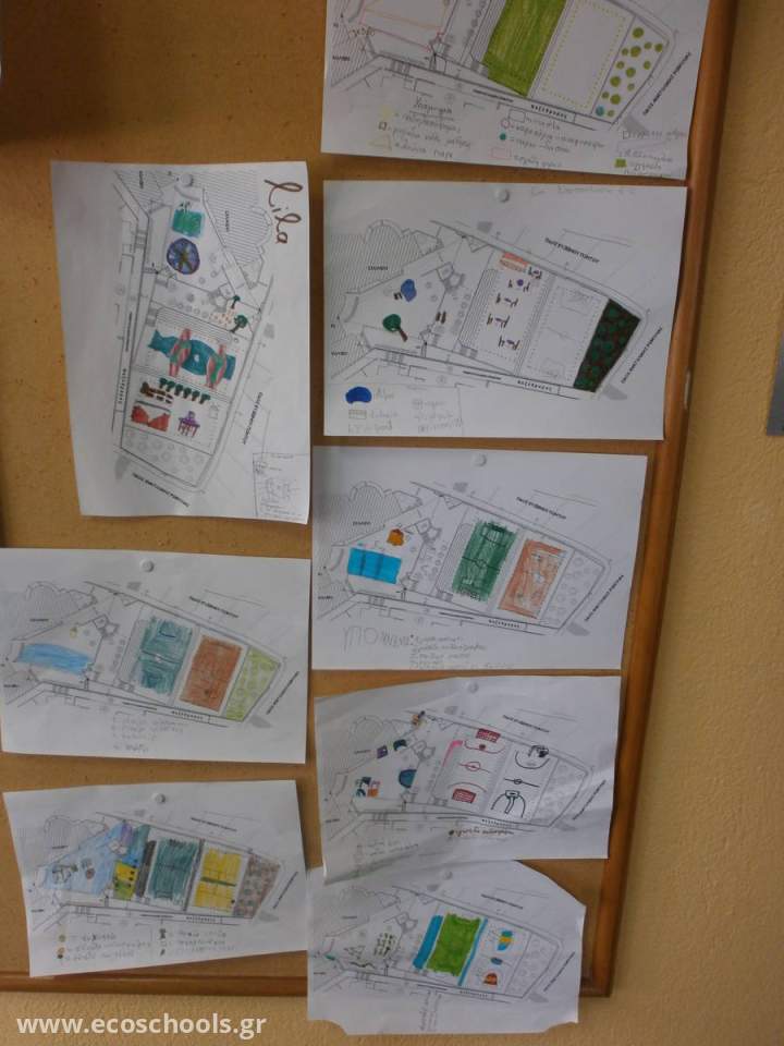 Οι μαθητές του Ε2 με τη βοήθεια του δασκάλου τους, Δημοσθενίδη Δημήτριου, μέτρησαν και υπολόγισαν το συνολικό εμβαδό της αυλής προκειμένου να διαπιστώσουν αν η αυλή ανταποκρίνεται στον αριθμό των μαθητών του σχολείου. Έπειτα σχεδίασαν πάνω στο τοπογραφικό σχέδιο της αυλής περαιτέρω παρεμβάσεις που θα ήθελαν να γίνουν και πιστεύουν ότι θα βοηθήσουν προς τη βελτίωσή της.