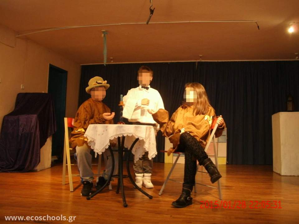 Οι μαθητές της Ε1 ανεβάζουν με την βοήθεια της εκπαιδευτικού της Θεατρικής Αγωγής Θωμαής Κατιρτζίδου, θεατρική παράσταση με θέμα την κομποστοποίηση. Βασικοί ήρωες του έργου που έγραψε η δασκάλα του τμήματος Χαρούλα Γαϊτανά, δυο νιόπαντρα και πεινασμένα σκουληκάκια, ο Άκης Σκουληκάκης και η Κούλα Σκουληκούλα. Τα σκουληκάκια πηγαίνουν για φαγητό στον κομποστοποιητή του σχολείου και μέσα από αυτή την ιστορία περνούν όλες οι γνώσεις που πρέπει να αποκτήσουν οι μαθητές. Το τραγούδι της παράστασης έγραψαν τα ίδια τα παιδιά. Τα σκηνικά έφτιαξε ο εκπαιδευτικός των εικαστικών Καρακίτσος Χρήστος ενώ μουσικά έντυσε την παράσταση ο μουσικός του σχολείου Παναγιώτης Παπαμόσχου. Την παράσταση παρακολούθησαν διαδοχικά όλοι οι μαθητές του σχολείου, μικροί και μεγάλοι αλλά και οι γονείς των παιδιών. Την παράσταση παρακολούθησε επίσης και η δήμαρχος Καβάλας κα. Δήμητρα Τσανάκα, η οποία προσκλήθηκε από τους μαθητές της Γ΄ τάξης, σε επίσκεψη που έκαναν στο γραφείο της, ώστε να δει εκτός από το θεατρικό και τις εργασίες στην αυλή του σχολείου.