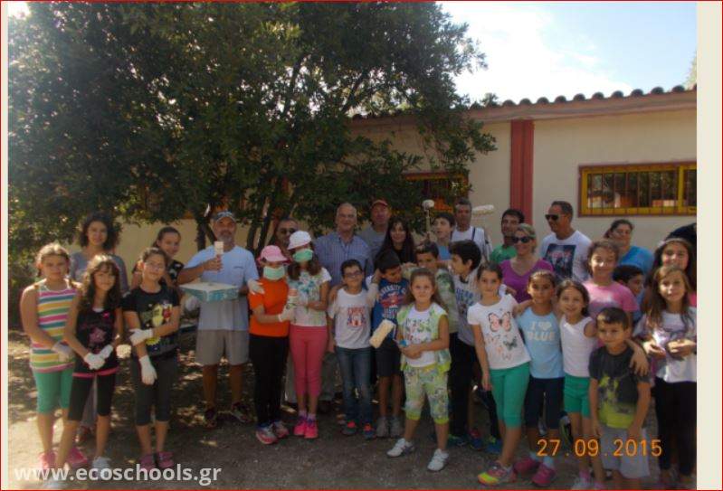 Στις αρχές της νέας σχολικής χρονιάς και συγκεκριμένα στις 27/9/2015 η περιβαλλοντική ομάδα μαζί με τους γονείς τους έβαψαν την αυλή του σχολείου μας . Οι μαθητές μας έσβησαν όλη την "ασχήμια", που υπήρχε στους τοίχους, και ζωγράφισαν όμορφες αθλητικές παραστάσεις . Τα χρήματα που χρειάστηκαν για το βάψιμο τα είχαν μαζέψει τα παιδιά από το περσινό χριστουγεννιάτικο παζάρι που είχε κάνει η περιβαλλοντική ομάδα.