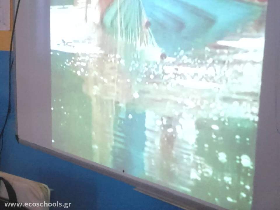 Οι μαθητές της Γ΄ τάξης παρακολουθούν ένα βίντεο από την εκπαιδευτική τηλεόραση και συζητούν τη δημιουργία του κύκλου του νερού στη φύση.