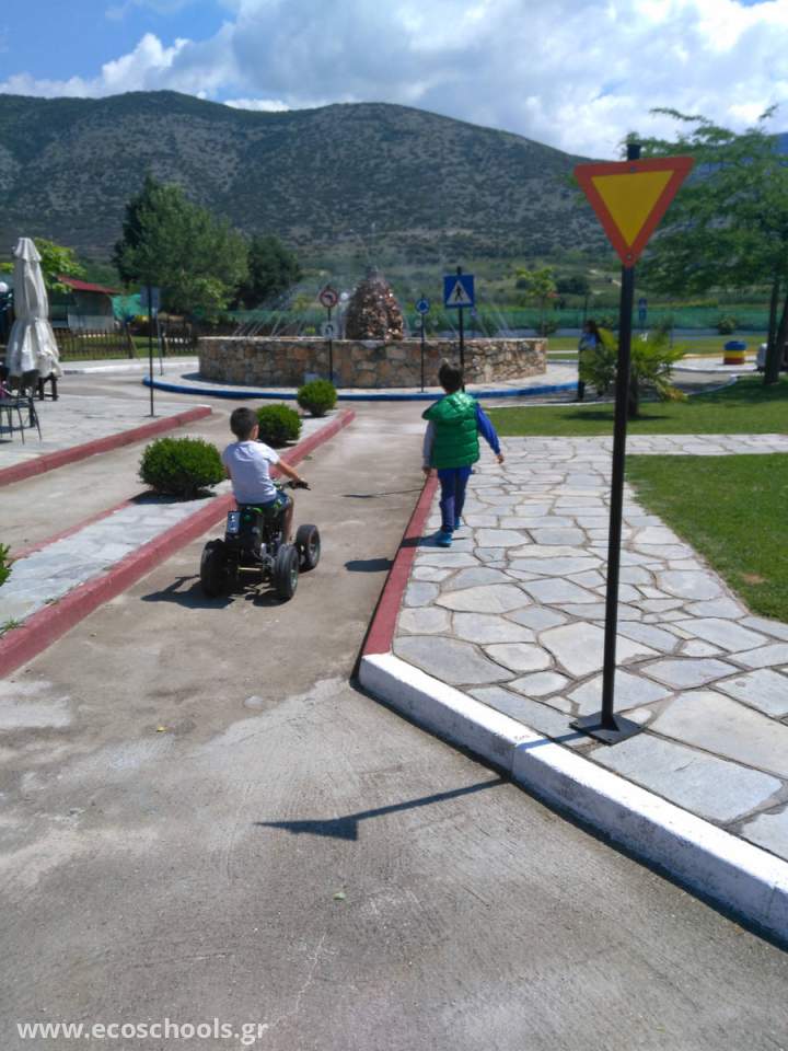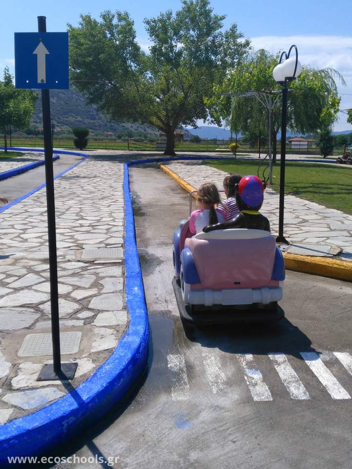 Στο πλαίσιο του προγράμματος των Οικολογικών Σχολείων με θέμα την «Ποιότητα Ζωής- Μετακινήσεις», οι μαθητές της A’ Τάξης με τις δασκάλες τους κ. Ταχτσή Τάνια και κ. Γαβριηλίδου Θένια, επισκέφτηκαν το πάρκο κυκλοφοριακής αγωγής Λυδίας. Σκοπός της επίσκεψης ήταν οι μαθητές να διαμορφώσουν υπεύθυνη συμπεριφορά σε θέματα κυκλοφοριακής αγωγής και να κατανοήσουν τη σημασία του κώδικα οδικής κυκλοφορίας. Στο πάρκο είχαν τη δυνατότητα να ασχοληθούν με διάφορες δραστηριότητες και να παίξουν πολλά παιχνίδια.