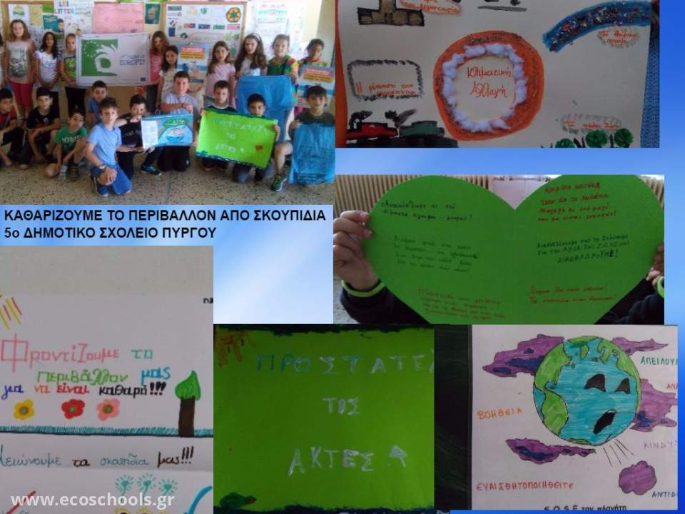 Μαθητές, εκπαιδευτικοί, γονείς του 5ου δημοτικού Σχολείου Πύργου συμμετείχαμε φέτος στην Ευρωπαϊκή Ημέρα Καθαρισμού, στο πλαίσιο της Εκστρατείας «Ας Καθαρίσουμε την Ευρώπη»,