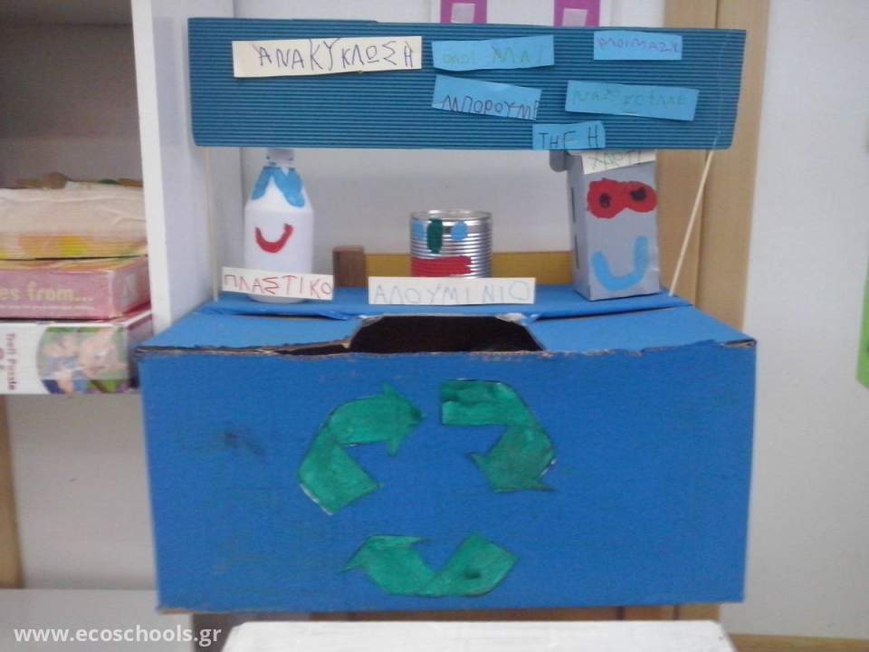 Δημιουργήσαμε με χαρτόκουτο κάδο ανακύκλωσης προκειμένου να ανακυκλώνουμε συσκευασίες που χρησιμοποιούμε καθημερινά μέσα στην τάξη.