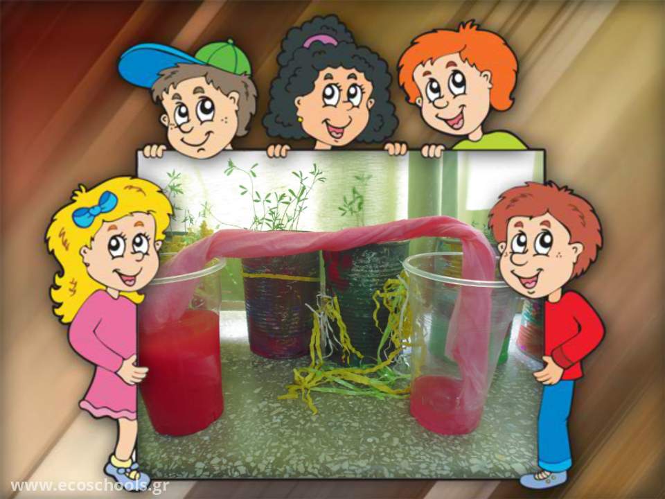 Με τους μαθητές του Α΄1 μιλήσαμε για το πώς φτάνει το νερό από τις ρίζες στο υπόλοιπο φυτό.Αναφέραμε ότι όταν έχουμε να ποτίσουμε πολύ καιρό ένα φυτό τα φύλλα του είναι μαραμένα, ενώ μόλις το ποτίσουμε παίρνουν πάλι την κανονική τους μορφή. Πώς όμως το νερό αψηφά τη βαρύτητα και ανεβαίνει από τις ρίζες στο υπόλοιπο φυτό;