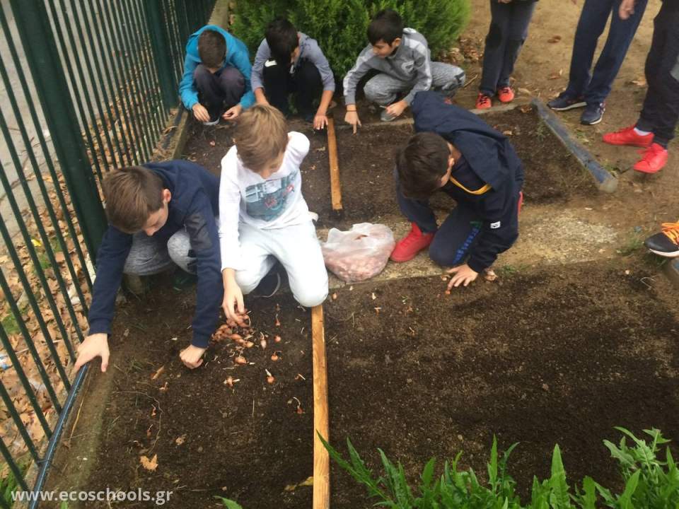 Όπως πέρυσι έτσι και φέτος συνεχίζουμε τη δράση στο σχολικό μας κήπο φυτεύοντας διάφορα λαχανικά, με την καθοδήγηση του γεωπόνου κ. Αθανάσιου Γκέρτση, ο οποίος μας έμαθε ποια φυτά μπορούμε να φυτέψουμε τέτοια εποχή. Οι μαθητές της ΣΤ΄ τάξης ανέλαβαν να φυτέψουν αφού πρώτα φρέζαραν το χώμα, κρεμμύδια, ραπανάκια και αντίδια. Όλη αυτή η διαδικασία προκάλεσε ποικίλα συναισθήματα και εντυπώσεις στους μικρούς μας καλλιεργητές. Η παρακολούθηση θα γίνεται συστηματικά μέχρι την ανάπτυξη των λαχανικών μας και μέχρι να έρθει η ώρα να τα γευτούμε.