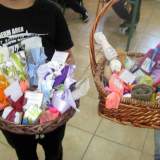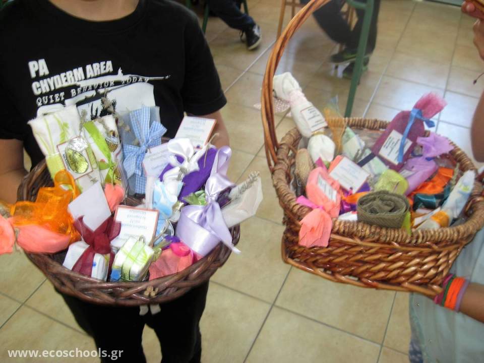 Οι μικροί  μας σαπωνοποιοί ανέλαβαν δράση και πάλι.Αφού παράλαβαν τα τεμάχια του χειροποίητου σαπουνιού που είχαμε φτιάξει στην τάξη ένα μήνα πριν και τεμαχισμένο το είχαμε αφήσει να ωριμάσει,ήρθε η ώρα της συσκευσίας του σε δωράκια για τα ίδια και τους αγαπημένους τους.Τα παιδιά συγκέντρωσαν κορδέλες,κομμάτια ύφασμα,τούλια που υπήρχαν ήδη στο σπίτι τους.Αυτά αποτέλεσαν τα υλικά συσκευασίας δώρου για τα σαπουνάκια μας..Στρωθήκαμε στη δουλειά και το αποτέλεσμα,απλά καταπληκτικό.Αφού συσκεύασαν τα δωράκια τους συσκεύασαν σε δυο καλάθια σαπουνάκια-δώρα τα οποία τα ίδια πρόσφεραν στους δασκάλους του σχολείου.Χίλια μπράβο,παιδιά!!!