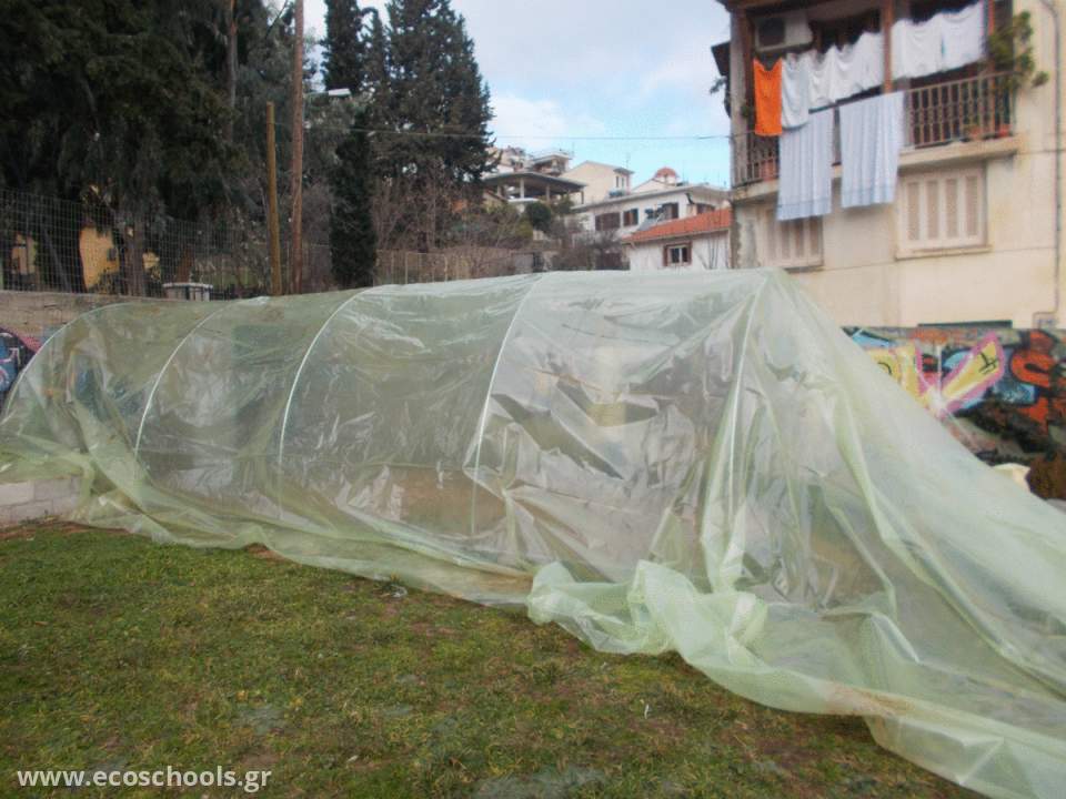 Για τις ανάγκες του εργαστηρίου Γεωπονίας θεωρήσαμε ότι έιναι αναγκαία η ανακατασκεύη ενός θερμοκηπίου που θα υπηρετεί τις αρχές της αειφορίας.
