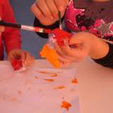 Οι μαθητές μας κατασκεύασαν μάσκες, χρησιμοποιώντας υλικά συσκευασίας: χαρτόνια, σακούλες, διακοσμητικά δώρων, κορδέλες και αβγοθήκες! Το αποτέλεσμα ήταν μια ομάδα πολύχρωμων πουλιών που τιτίβιζαν ασταμάτητα!