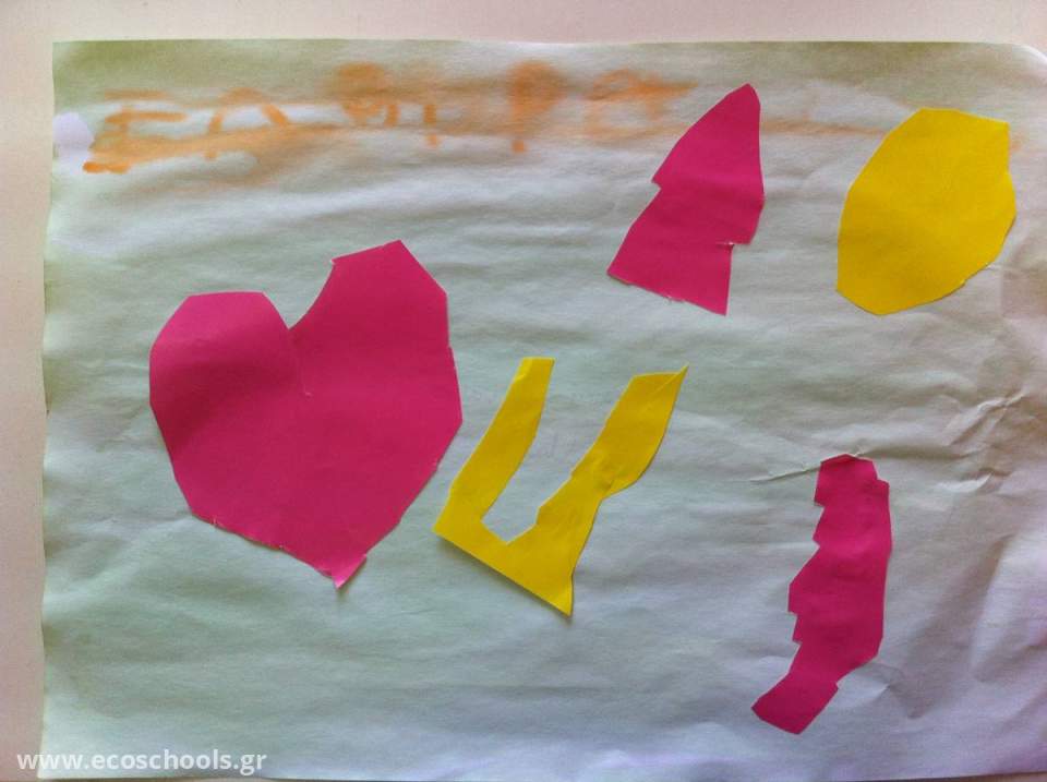 Στη συνέχεια για το κολάζ χρησιμοποιήθηκαν μικρά κομματια χαρτιών που είχαν κρατηθεί από προηγούμνες δραστηρίοτητες έτσι ώστε να δημιουργήσουμε τέχνη με τα "σκουπίδια" μας.