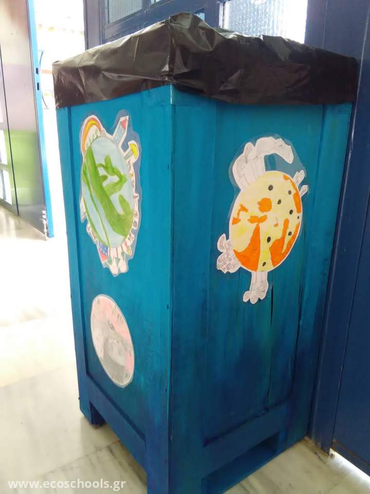 Με κάποια ξύλα που βρήκαμε κατασκευάστηκε ένας μόνιμος ξύλινος κάδος ανακύκλωσης για καπάκια μέσα στα πλαίσια της προσπάθειας των μαθητών του σχολείου μας να συγκεντρώσουν ένα μεγάλο αριθμό, ώστε να αγοραστεί ένα αμαξίδιο για αναπήρους.
