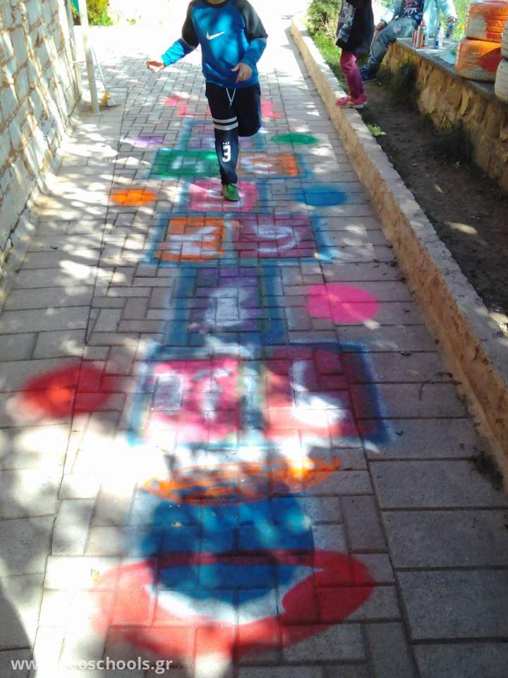 Κατασκευάζουμε παιχνίδια και γεμίζουμε με graffiti την σχολική αυλή μας!Δημιουργήσαμε επιπλάκια από παλέτες για να κάνουμε μάθημα έξω από τις τάξεις. Δίνουμε χρώμα ανοιξιάτικο παντού!