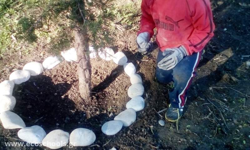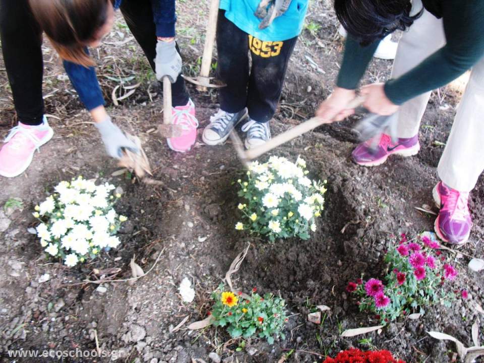 Ο κύριος Χρήστος (μπαμπάς μαθητή μας),μάς όργωσε με φρεζάκι το μέρος που έχουμε σχεδιάσει ότι θα φυτέψουμε.Εμείς στρώσαμε το χώμα με τσουγκράνες,αφού πρώτα το καθαρίσαμε από τις πέτρες και φυτέψαμε χρυσάνθεμα, αλλά και μαρουλάκια,φραουλιές και τα ποτίσαμε με νερό στο οποίο είχαμε διαλύσει κατακάθι από καφέ. Όμως στολίσαμε και τα ήδη υπάρχοντα δέντρα με πετρούλες αφού πρώτα ξεχορταριάσαμε και σκάψαμε τη λακκούβα γύρω από τα δέντρα για το πότισμα.