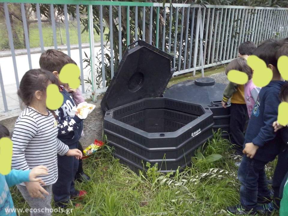 Στο Νηπιαγωγείο ξεκινάμε τη διαδικασία να φτιάξουμε το δικό μας κομπόστ στους ειδικούς κάδους που μας έχει προμηθεύσει ο Δήμος της περιόχης . Το φυσικό αυτό λίπασμα θα το χρησιμοποιήσουμε για τα λουλούδια και τα λαχανικά που έχουμε φυτέψει στον κήπο του Σχολείου.