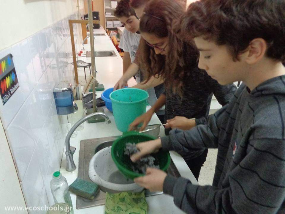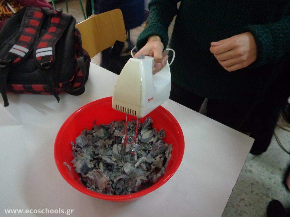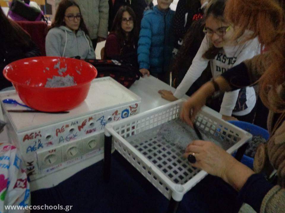 Ανακυκλώσαμε παλιές εφημερίδες και περιοδικά στο σχολείο και δημιουργήσαμε χειροποίητες Χριστουγεννιάτικες κάρτες, τις διακοσμήσαμε και τις ανταλλάξαμε με συνεργαζόμενα σχολεία στην Ιταλία, Αγγλία, Ισπανία και Πορτογαλία.- Δεκέμβριος 2017.