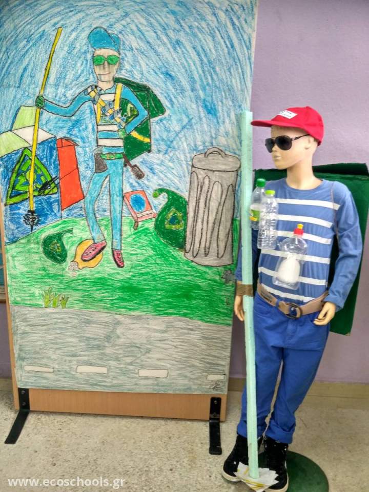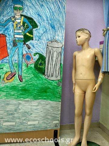 Σας παρουσιάζουμε με περηφάνια τον ήρωα-μασκότ του σχολείου μας. Το εγχείρημα ξεκίνησε την προηγούμενη σχολική χρονιά. Η νικητήρια ζωγραφιά περίμενε ένα χρόνο σχεδόν για να "ζωντανέψει". Μια κούκλα βιτρίνας (ευχαριστούμε κα Γεωργία), απεριόριστη φαντασία και υλικά (ευχαριστούμε κα Στέλλα) και το μεράκι των παιδιών έφερε το αποτέλεσμα που βλέπετε!!!