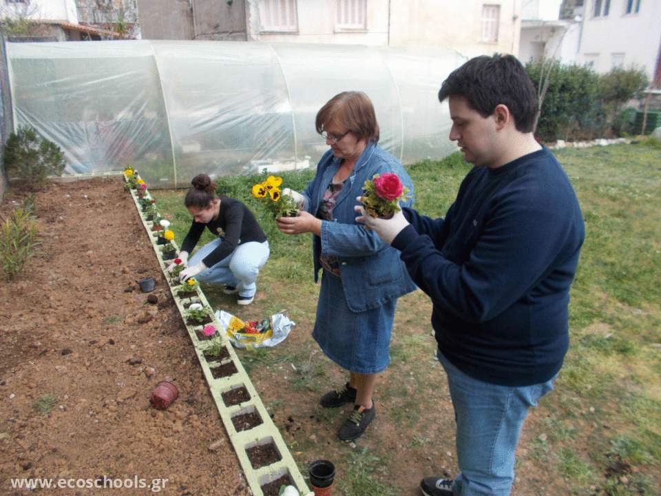 Η κατασκευή του παρτεριού πραγματοποιήθηκε στα πλαίσια διαμόρφωσης του εξωτερικού προαυλίου του σχολείου.