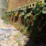 Παράλληλα, στο ενδιάμεσο φυτεύσαμε κολοκυθιές που απλώνονται κατα μήκος του παρτεριού.