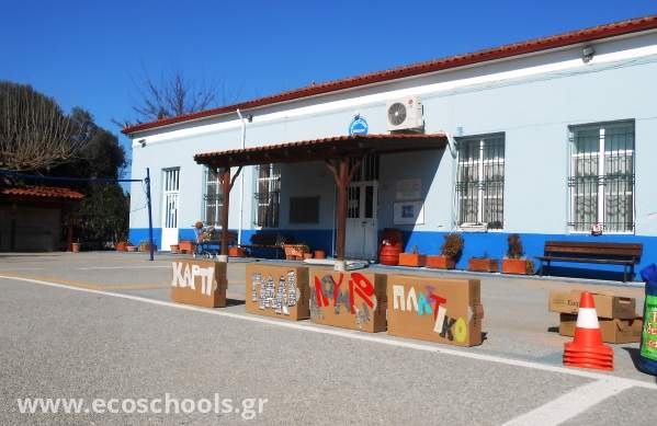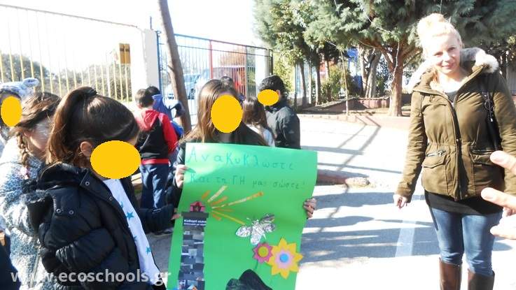 Παίξαμε παιχνίδια με συσκευασίες, τους ξεναγήσαμε στο σχολείο μας και παρουσιάσαμε τις εργασίες μας και τις πρακτικές μας πάνω στο θέμα της διαχείρισης των απορριμμάτων. Τέλος ανταλλάξαμε χειροποίητα αναμνηστικά αφισάκια!Είπαμε πως θα ξαναβρεθούμε γιατί η εμπειρία ήταν πολύ όμορφη.