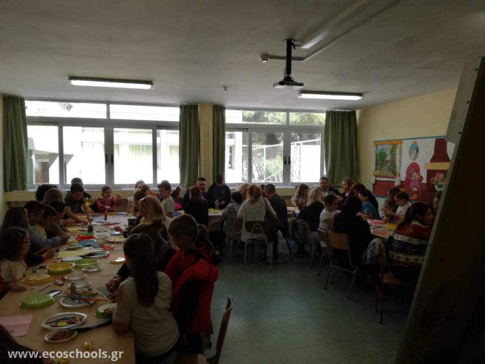 Τέλος, πραγματοποίησαν μία δραστηριότητα σε συνεργασία με τους γονείς τους. Αναλυτικότερα, έφτιαξαν με τους γονείς τους διακοσμητικά πιατάκια από ανακυκλώσιμα υλικά, ενέργεια που συνοδεύτηκε από την πολύτιμη βοήθεια της δασκάλας των καλλιτεχνικών, κας Μαρίνας Κοράκη.