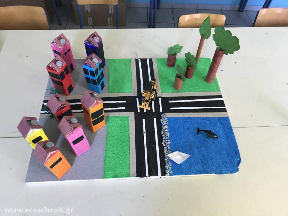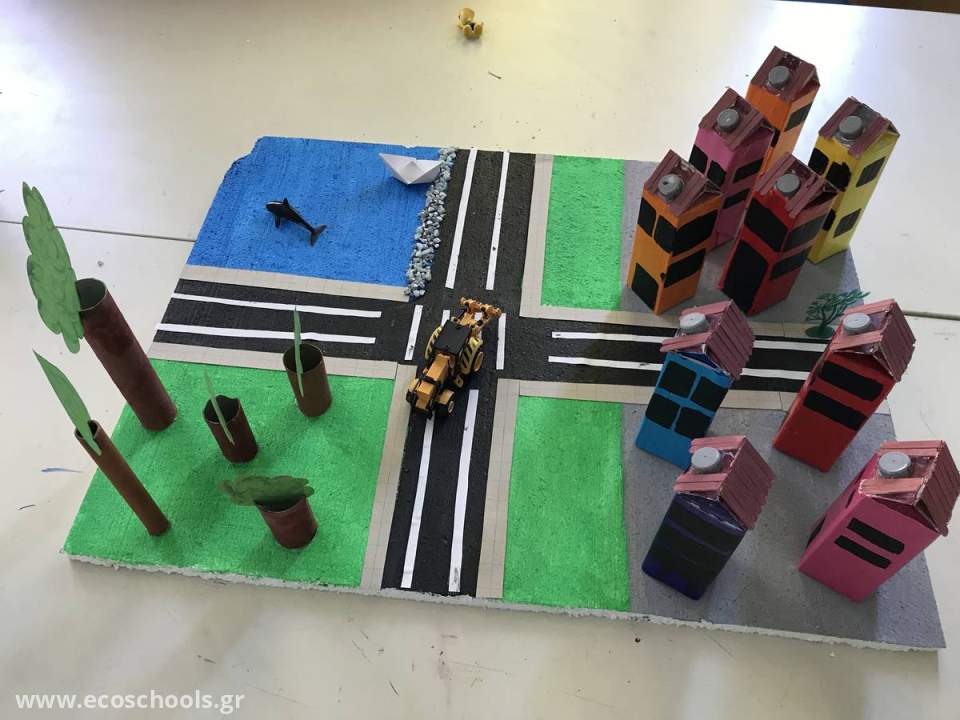 Οι μαθητές μας έφτιαξαν μια πολιτεία με ανακυκλώσιμα υλικά όπως χαρτόκουτα από γάλα,ρολά χαρτιού,πλαστικές χάντρες και ξυλάκια!!!!!Περάσαμε όμορφα και δημιουργικά!!!!