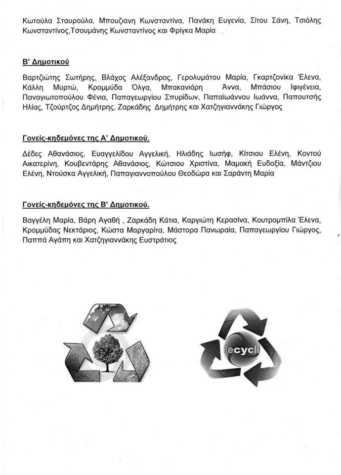 - τους μαθητές της Α' και Β΄ Δημοτικού