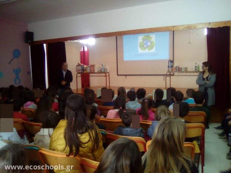Στο σχολείο μας πραγματοποιήθηκε μία εκδήλωση ενημέρωσης σχετικά με την ανακύκλωση. Την εκδήλωση παρακολούθησαν όλοι οι μαθητές του σχολείου. Ομιλητές ήταν ο δήμαρχος Θάσου, κ. Χατζηεμμανουήλ Κωνσταντίνος και η κ. Ραφαήλ Ειρήνη, ΤΕ Αρχιτέκτων Τοπίου, Τμήμα Περιβάλλοντος, Καθαριότητας & Πολιτικής Προστασίας, Υπεύθυνη Ανακύκλωσης Δήμου Θάσου. Μετά από την πολύ ενδιαφέρουσα ομιλία ακολούθησε συζήτηση και οι μαθητές συμμετείχαν σε κάποιες βιωματικές δραστηριότητες. Στο τέλος, οι μαθητές προμηθεύτηκαν από μία σακούλα ανακύκλωσης και από έντυπο ενημερωτικό υλικό.