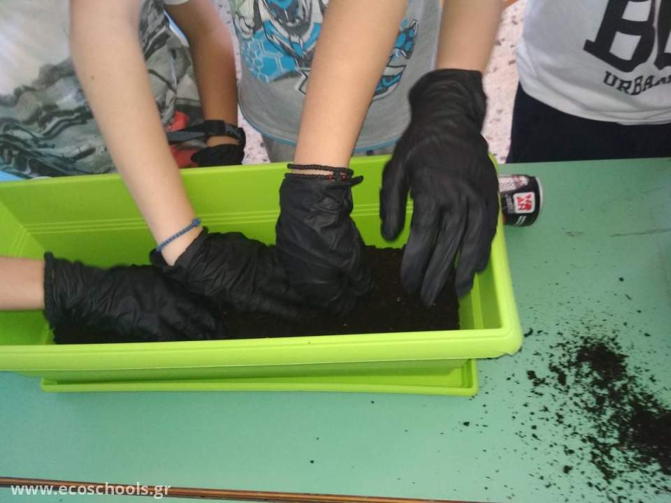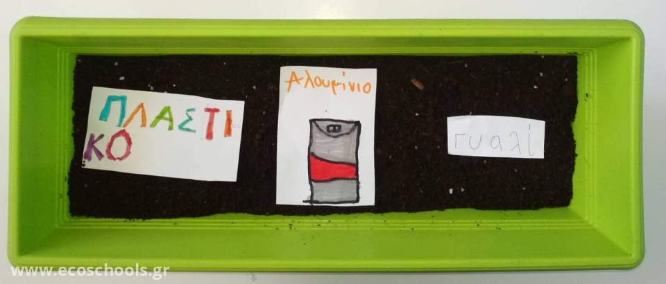 Οι μαθητές "φυτεύουν" σκουπίδια… μετά από σαράντα μέρες θα ξεθάψουν τα αντικείμενα και θα δουν ποια από αυτά έχουν αλλοιωθεί, ποια έχουν διασπαστεί, ποια είναι πιο ανθεκτικά.