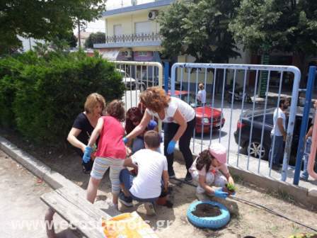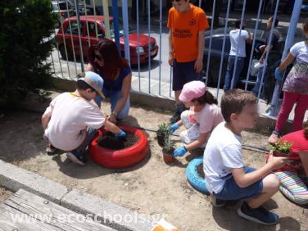 Οι μαθητές/ τριες του 32ου Δημοτικού Σχολείου Βόλου φυτεύουν βότανα και αρωματικά φυτά στην αυλή του σχολείου τους.