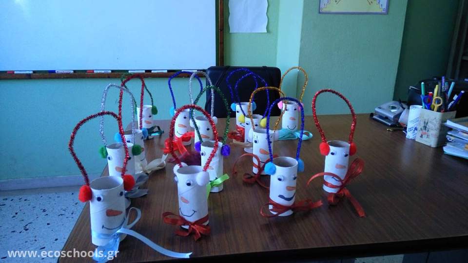Οι μαθητές/τριες εν όψει των Χριστουγέννων κατασκεύασαν χιονανθρωπάκια από ρολό υγείας.