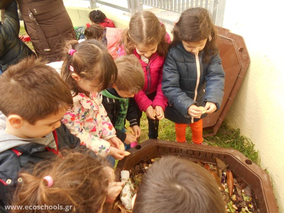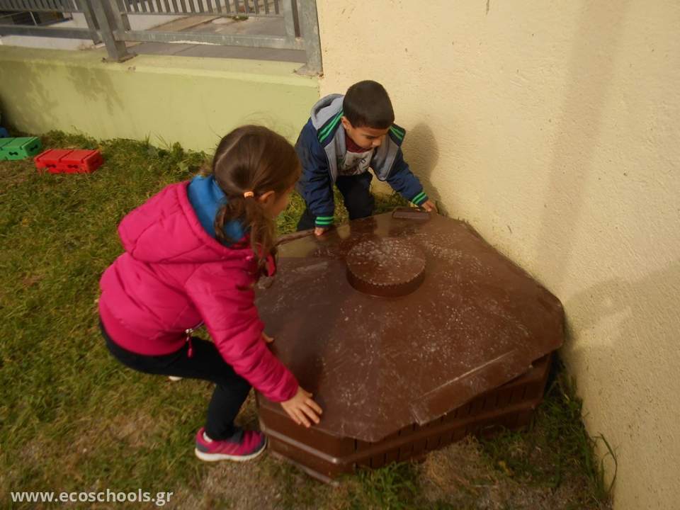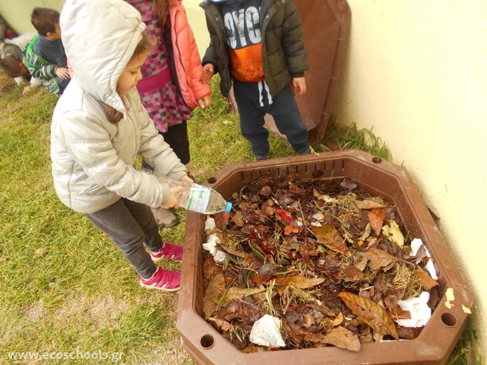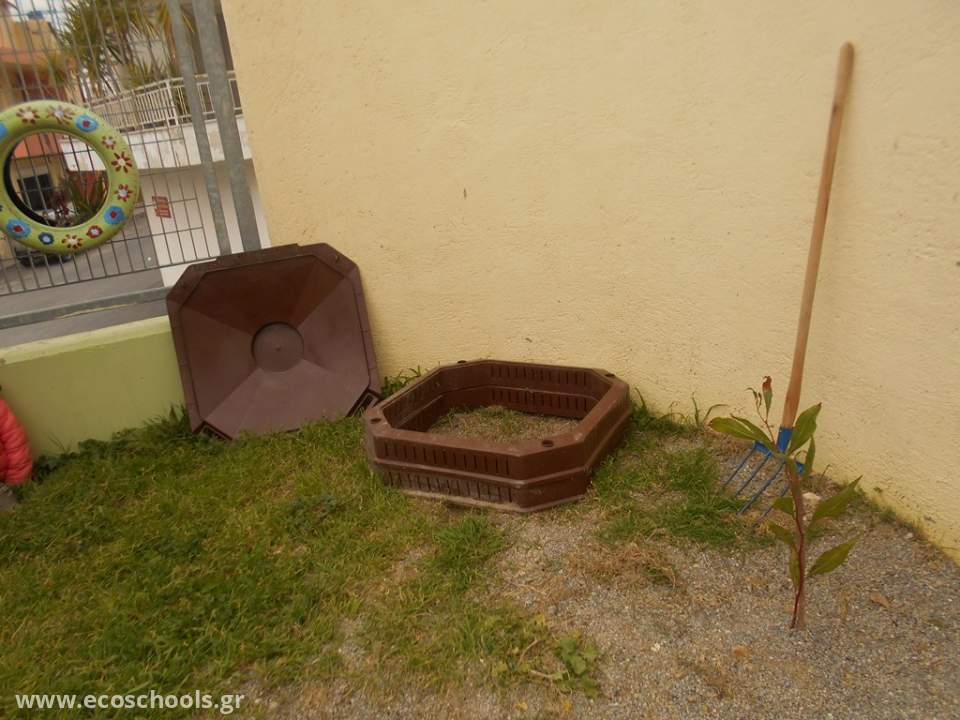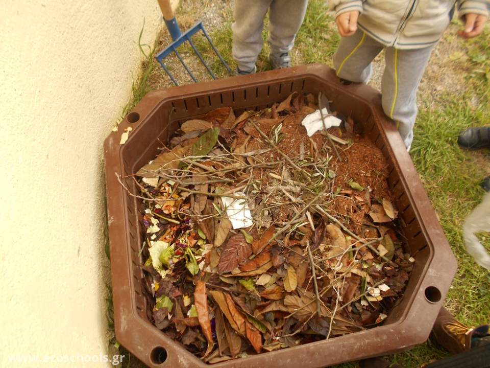 Μετά τη δεντροφύτευση, ήρθε η ώρα να ετοιμάσουμε το "φαγητό" των φυτών μας, για να τα βοηθήσουμε να αναπτυχθούν. Με τη συνεργασία του εσδακ (ενιαίος σύνδεσμος διαχείρισης απορριμμάτων Κρήτης), ο οποίος μας παραχώρησε τον κομποστοποιητή και μας ενημέρωσε για τη διαδικασία, καθώς και την ενεργητική συμμετοχή των μαθητών και των οικογενειών τους ξεκινήσαμε να κάνουμε κομποστοποίηση στο σχολείο μας. Τοποθετήσαμε τον κομποστοποιητή μας σε μια γωνιά της αυλής μας και τον τροφοδοτούμε με υλικά - απορρίμματα που φέρνουμε από το σπίτι και περιμένουμε το αποτέλεσμα...