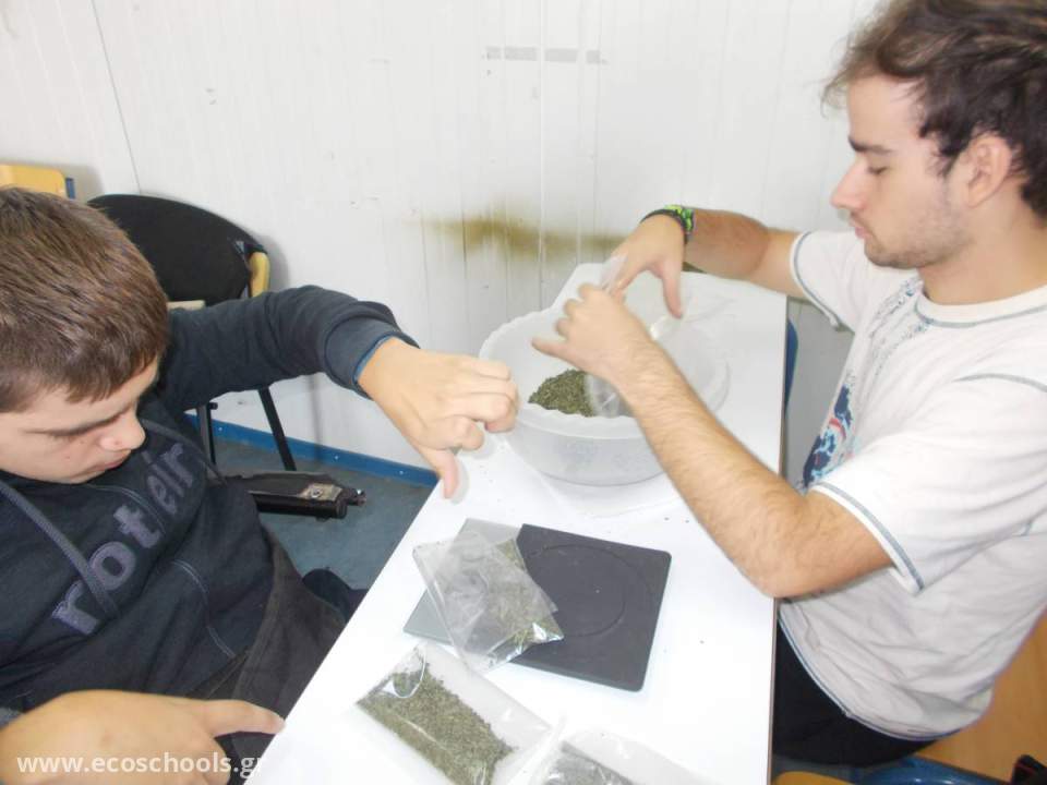 Στα πλαίσια του εργαστηρίου Γεωπονίας οι μαθητές συνέλλεξαν τα αρωματικά φυτά του κήπου και προχώρησαν στην μεταποίηση- τυποποίηση των προ'ίόντων.