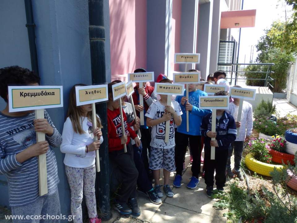 Οι μαθητές της Β΄τάξης τοποθέτησαν στον κήπο τις πινακίδες που έφτιαξαν.