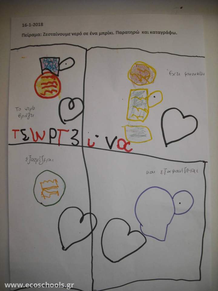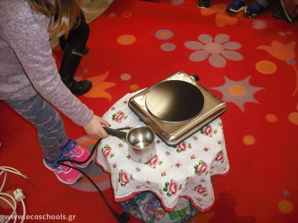 Έχοντας παρακολουθήσει παλαιότερα την προσωμοίωση της βροχής που μπορείτε να δείτε εδώ http://photodentro.edu.gr/lor/r/8521/6954?locale=el αναρωτιόμαστε με ποιο τρόπο μπορούμε να δημιουργήσουμε μια μικρή βροχή μεσα στήν τάξη μας. Αναζητούμε κάτι ζεστό που θα μπορούσαμε να χρησιμοποιήσουμε στη θέση του ήλιου.Οι ιδέες πέφτουν βροχή! Έπειτα από συζήτηση και έρευνα στην τραπεζαρία του σχολείου,συγκεντρώνουμε τα εργαλεία για το πείραμά μας.Εκτός από το ηλεκτρικό μάτι και το μπρίκι χρησιμοποιούμε και ένα μεγάλο πλαστικό καπάκι πάνω στο οποίο τοποθετούμε μία παγοκύστη για να δημιουργήσουμε έναν παγωμένο ουρανό. Πριν το πείραμα ενθαρρύνουμε τους μαθητές να κάνουν υποθέσεις.Κατα τη διάρκεια του πειράματος τα παιδιά παρατηρούν και καταλήγουν σε συμπεράσματα.Μετά την ολοκλήρωση του πειράματος οι μαθητές καταγράφουν όπως μπορούν τις παρατηρήσεις τους.Με τις φωτογραφίες από το πέιραμα φτιάχνουμε έναν πίνακα αναφοράς με τα βήματα που ακολουθήσαμε.