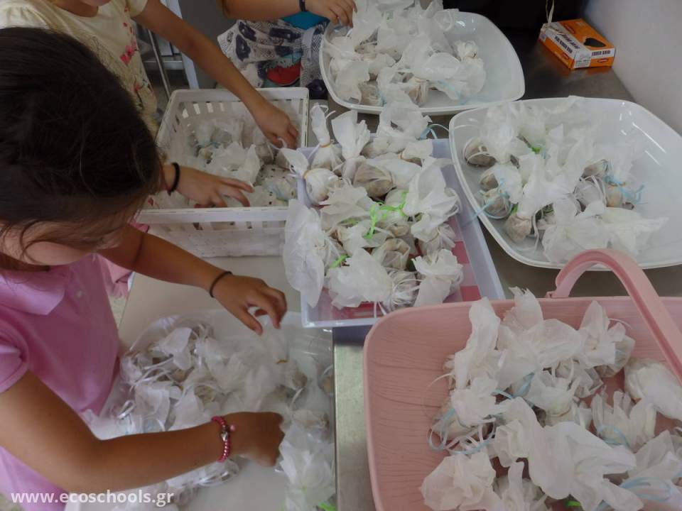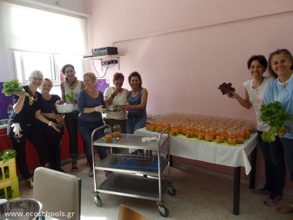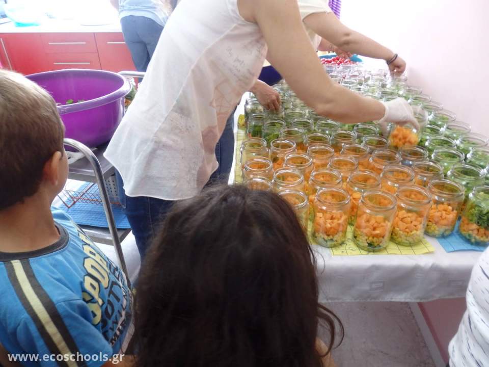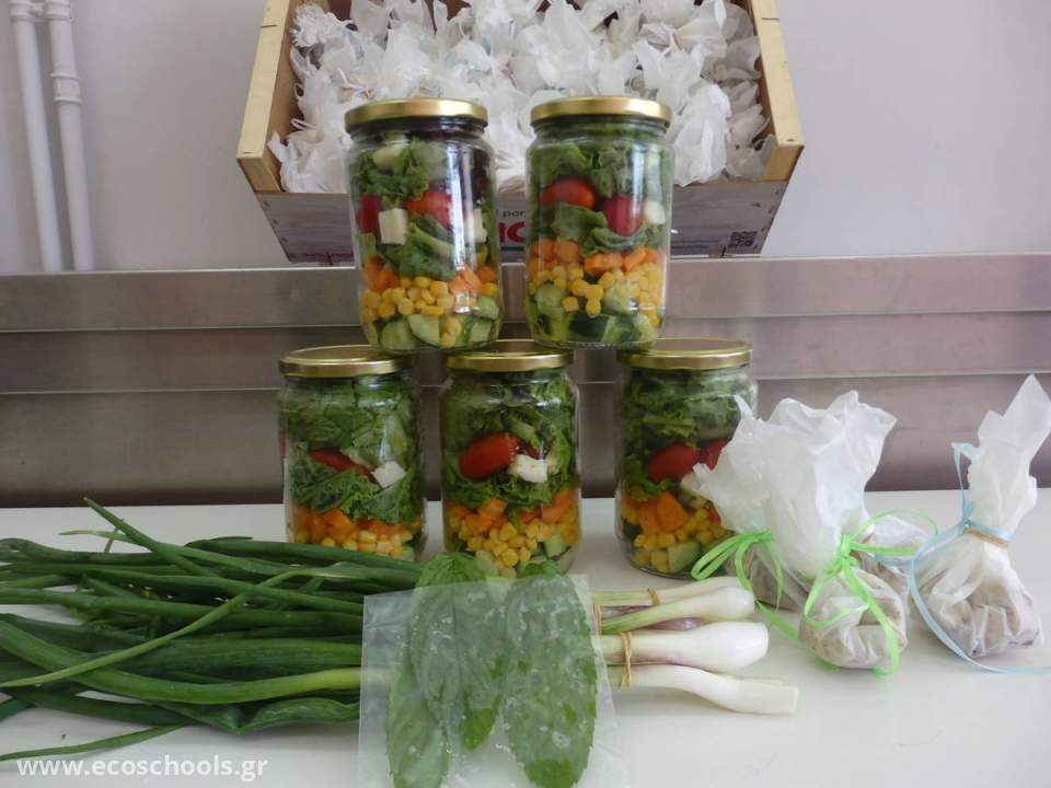 Οι μαθητές της Β΄& Γ΄τάξης (2ου & 6ου Δημ. Σχ. Αρτέμιδος) ετοίμασαν, με τα λαχανικά του κήπου μας, νόστιμες σαλάτες σε βαζάκια, συσκεύασαν χειροποίητα κρουτόν σε λαδόκολλα, δυόσμο σε σακουλάκια και έφτιαξαν ματσάκια από κρεμμυδάκια.