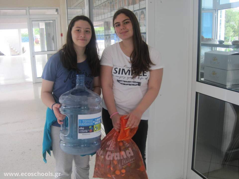 Η Περιβαλλοντική Ομάδα συνέχισε και φέτος τη συλλογή πλαστικών καπακιών, με στόχο τη δωρεά αναπηρικού αμαξιδίου σε κάποιο ίδρυμα. Τοποθετήθηκαν στις αίθουσες και στους διαδρόμους ειδικοί κάδοι, στη μορφή μεγάλων φιαλών νερού, που χορήγησε η εταιρεία Rainbow Waters. Στο τέλος του έτους το σύνολο των καπακιών θα παραδοθεί στο Δήμο Θεσσαλονίκης, ο οποίος θα φροντίσει να τα προωθήσει σε εργοστάσιο της Κεντρικής Μακεδονίας, που δωρίζει ένα αναπηρικό αμαξίδιο για κάθε τόνο καπακιών.