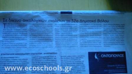 Αναμνηστικές φωτογραφίες με αποκόμματα από την εφημερίδα ΤΑΧΥΔΡΟΜΟΣ η οποία δημοσίευσε άρθρο(Κυριακή 13 Μαϊου 2018) για τη συμμετοχή του σχολείου μας στο δίκτυο των Οικολογικών Σχολείων.