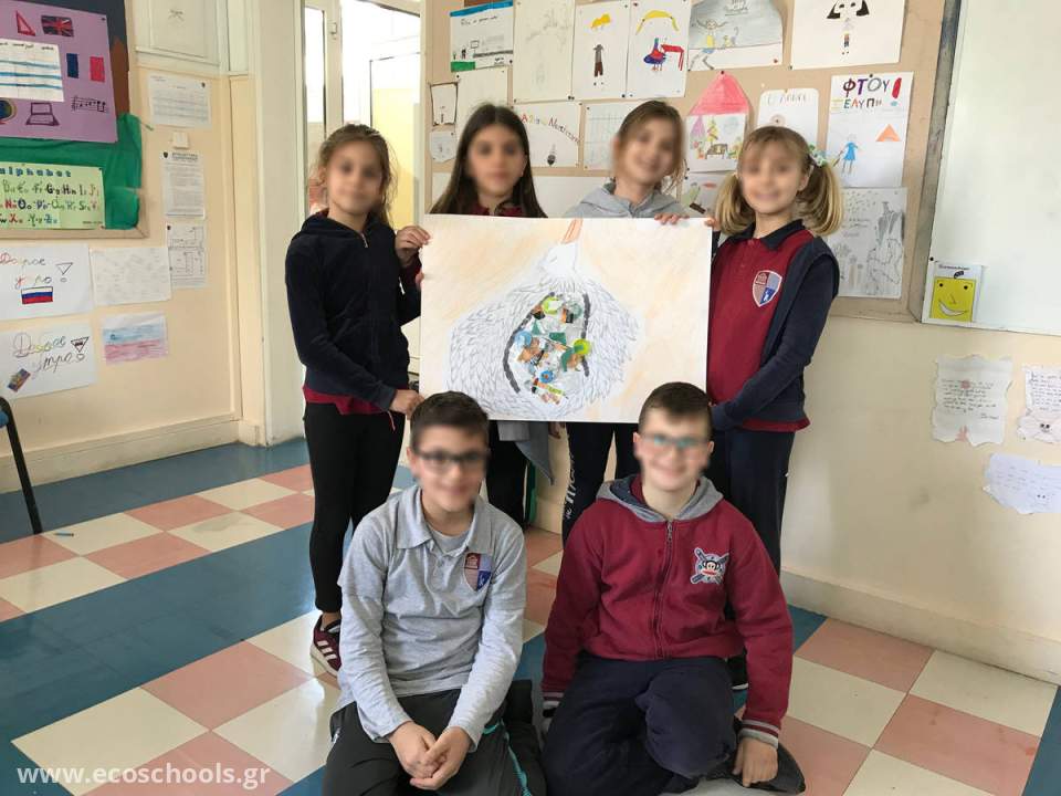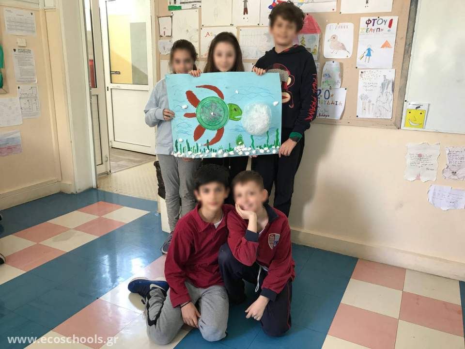 Οι μαθητές της Δ´ τάξης έκαναν εργασίες για το πλαστικό που βρίσκεται στις θάλασσες και μολύνει το νερό: Όλα τα παιδιά έκαναν ομαδικές εργασίες σε χαρτόνια.