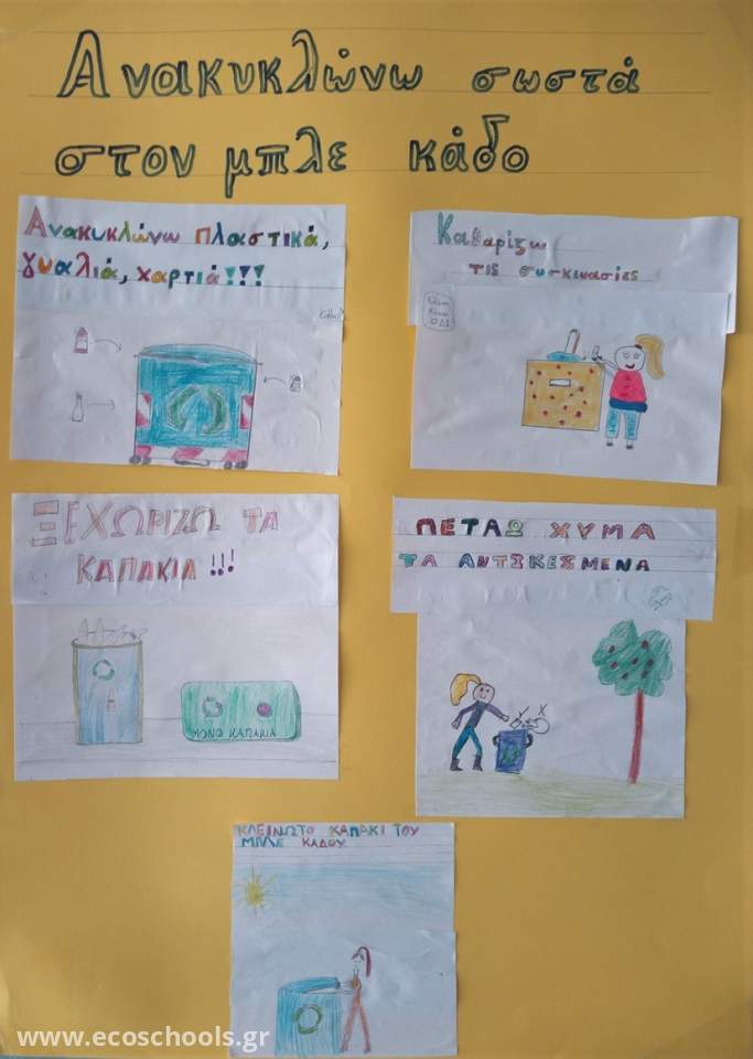 Οι μαθητές της Δ και Στ τάξης δημιούργησαν αφίσες με οικολογικά μηνύματα, τις οποίες τοποθέτησαν σε κεντρικά σημεία του σχολείου ορατά από όλους, μικρούς και μεγάλους.