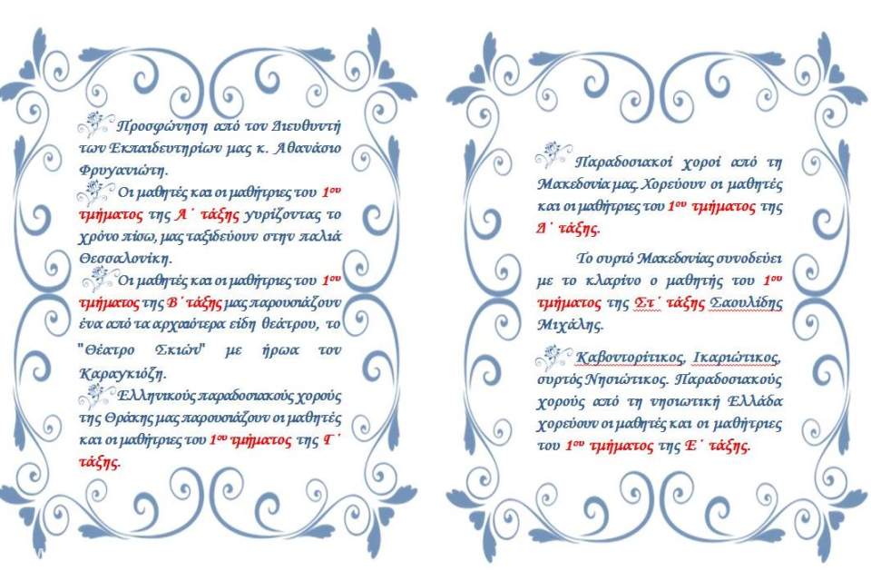 Έκαναν μια βουτιά στην Λαϊκή Παράδοση για να ανακαλύψουν τις ρίζες τους μέσα από ένα οδοιπορικό σε τόπους, ήθη και έθιμα, κειμήλια του παρελθόντος που διατηρούνται στο πέρασμα των χρόνων. Το ταξίδι ξεκίνησε από την πόλη μας τη Θεσσαλονίκη με παραδοσιακά παιχνίδια κάτω από τους ήχους της παλιάς λατέρνας που περιδιάβαινε στα σοκάκια για να καταλήξει στο αρχαιότερο είδος θεάτρου το ¨Θέατρο σκιών¨ με πρωταγωνιστή τον Καραγκιόζη.