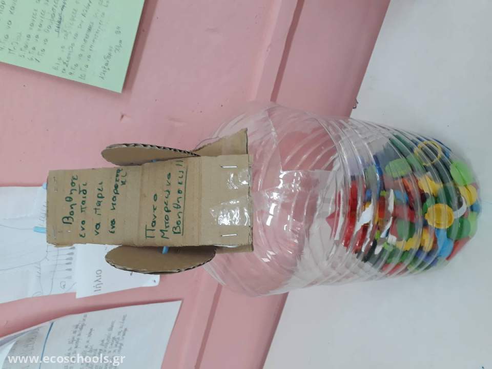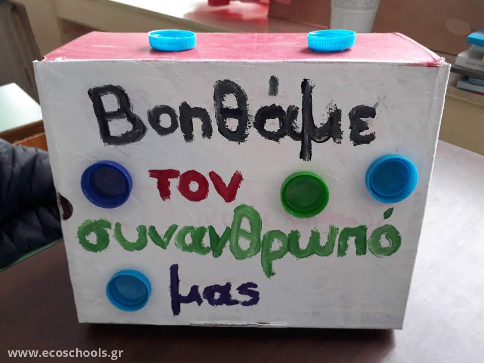 Α) Τοποθετήσαμε σε κάθε τάξη ένα μεγάλο πλαστικό μπουκάλι ή ένα χαρτόκουτο με την καλλιτεχνική επιμέλεια των μαθητών μας.