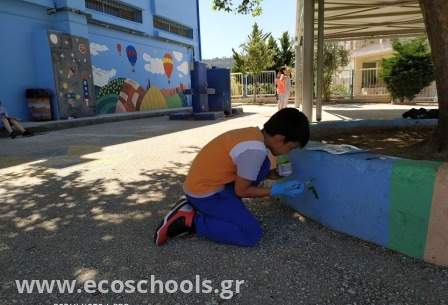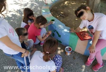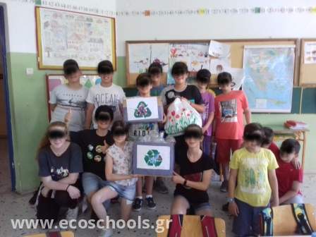 Οι μαθητές/τριες ετοίμασαν συνθήματα ανακύκλωσης τα οποία ανάρτησαν στις τάξεις και τους διαδρόμους του σχολείου και ζωγράφισαν το σήμα της ανακύκλωσης στη σχολική αυλή.