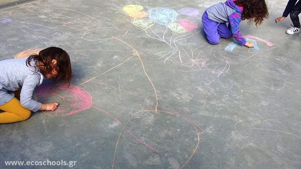 Μια γκρι τσιμεντένια αυλή, στον προαύλιο χώρο του σχολείου μας, μετατρέπεται σε καμβά. Γιατί η φντασία των παιδιών δεν έχει όρια...