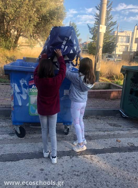 2. Να αγοράσουμε τσάντες πολλαπλής χρήσης για ανακύκλωση σε κάθε σχολική αίθουσα και έναν κάδο ειδικά για ανακύκλωση σε κεντρικό σημείο του σχολείου.
