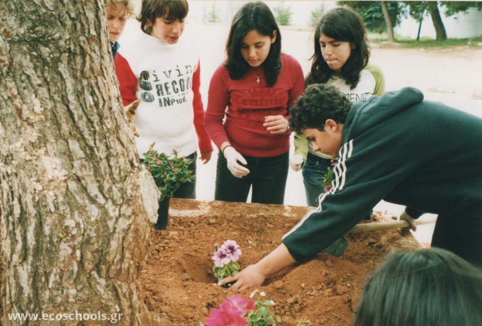 Από τότε, λοιπόν, και κάθε χρόνο γινόταν δράσεις γι αυτόν τον σκοπό: διαμόρφωση σημείων για φύτεμα θάμνων, περιμετρικά της αυλής, φύτεμα λουλουδιών διαμορφώνοντας τον χώρο γύρω από ήδη υπάρχοντα δέντρα της αυλής, δημιουργία χώρου με γρασίδι στην επάνω αυλή του σχολείου κ.ά.