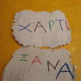 Με έναυσμα τις πολλές εφημερίδες στο χώρο του σχολείου μας και σε συνέχεια των φετινών οικολογικών δράσεων πoυ αφορούν την επαναχρησιμοποίηση, αποφασίσαμε με τα παιδιά να φτιάξουμε οικολογικό χαρτί ανακύκλωσης. Μαζέψαμε τις εφημερίδες του σχολείου και σε ομάδες τις κόψαμε σε κομμάτια. Στη συνέχεια ενώσαμε τα κομμάτια σε ένα μεγάλο κουβά και προσθέσαμε νερό, περιμένοντας 24 ώρες μέχρι να απορροφηθεί. Την επόμενη μέρα, πολτοποιήσαμε το μείγμα με multi προσθέτοντας όπου χρειαζόταν νερό. Απλώσαμε τον πολτό σε σίτα με πλάστη και τον αφήσαμε για 24 ώρες να στραγγίσει και να χάσει τα υγρά του. Τέλος, παρακολουθούσαμε την φυσική αλλαγή του χρώματος του πολτού, μέχρι να κατακτήσει το τελικό του χρώμα. Τα χαρτιά μας ετοιμάστηκαν και τα παιδιά θα τα χρησιμοποιήσουν γράφοντας πάνω τους τις λέξεις ΞΑΝΑ και ΧΑΡΤΙ, λέξεις που δείχνουν τον κύκλο της επαναχρησιμοποίησης του χαρτιού!